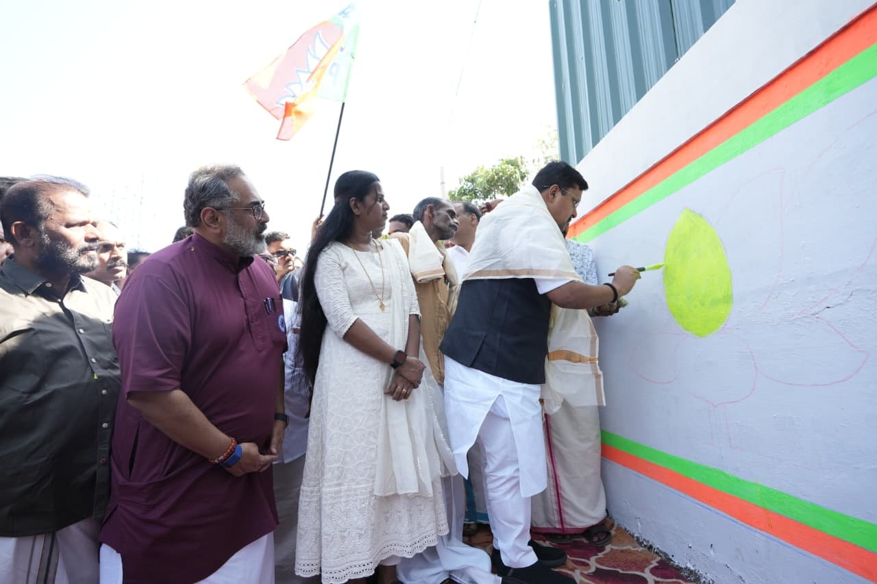 Thrissur: The Bharatiya Janata Party formally launched its campaign for the Thrissur Assembly constituency with a grassroots outreach programme led by BJP National President Shri Nitin Nabin. The campaign began with the inauguration of election wall writing at Booth No. 164 in Ollukkara, signalling the start of the party’s election activities at the booth level.