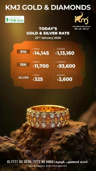 After touching historic peaks, gold prices in Kerala have taken a U-turn, slipping for the second consecutive day amid shifting global cues. Market experts say the decline is driven by global market fluctuations, a stronger US dollar, and profit-booking by investors. In today’s trading, the price of one sovereign (pavan) of gold dropped to ₹1,05,160, Read More…
