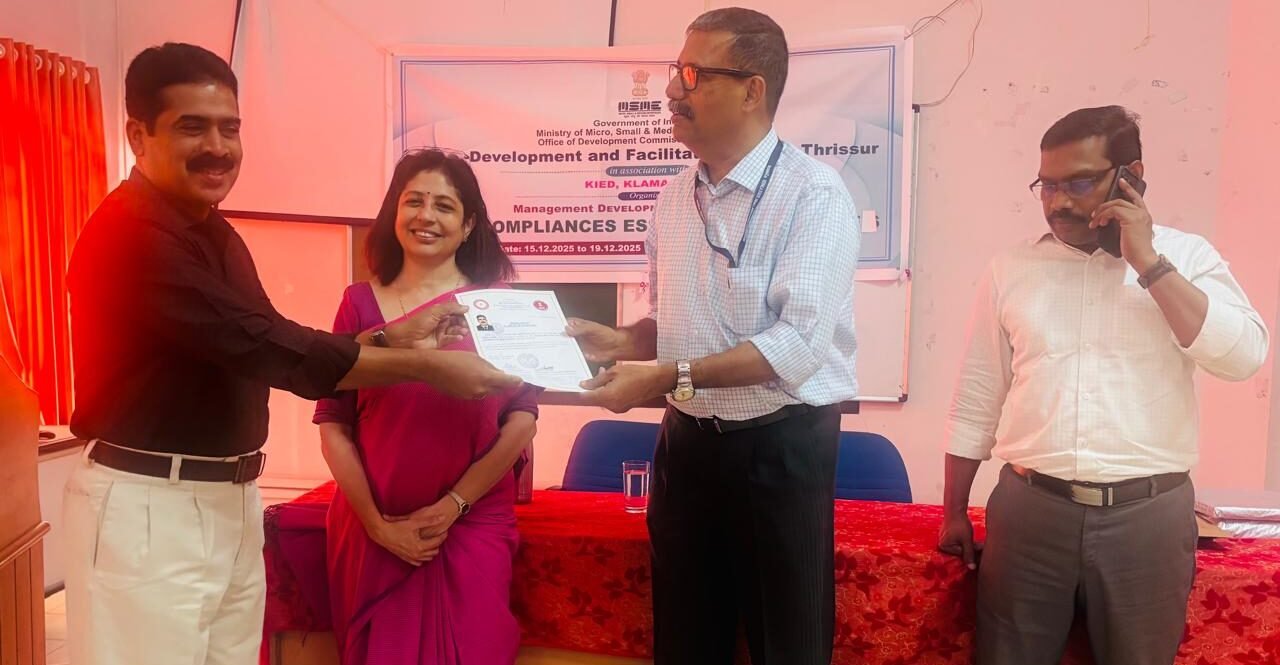 Kalamassery: The MSME–Development Office, Thrissur, in association with the Kerala Institute of Entrepreneurship Development (KIED), successfully organised a five-day Management Development Programme (MDP) on “Legal Compliance Essentials for MSMEs” at KIED, Kalamassery, from December 15 to December 19, 2025.
