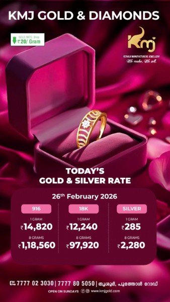 Kochi: Gold prices in the state witnessed a marginal dip on Friday, even as the yellow metal continues to trade above the ₹1.18 lakh mark per sovereign. After gaining over ₹3,000 in the past five days, the price of gold fell by ₹160 per sovereign, bringing it down to ₹1,18,560. On a per gram basis, the rate declined by ₹20 and now stands at ₹14,820, reflecting the ongoing volatility in the bullion market.