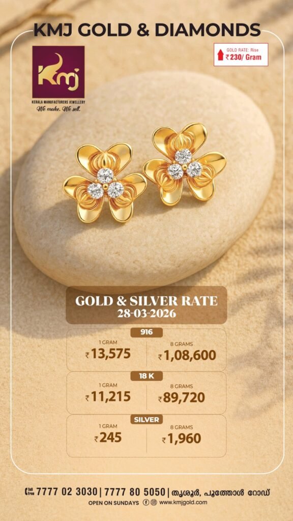 Gold prices in the state have increased again after a brief decline in recent days. The price of gold rose to ₹13,575 per gram. The price of one sovereign (8 grams) is now ₹1,08,600. However, 18-carat gold saw a slight hike and is priced at ₹11,215 per gram, with 8 grams costing ₹89,720.