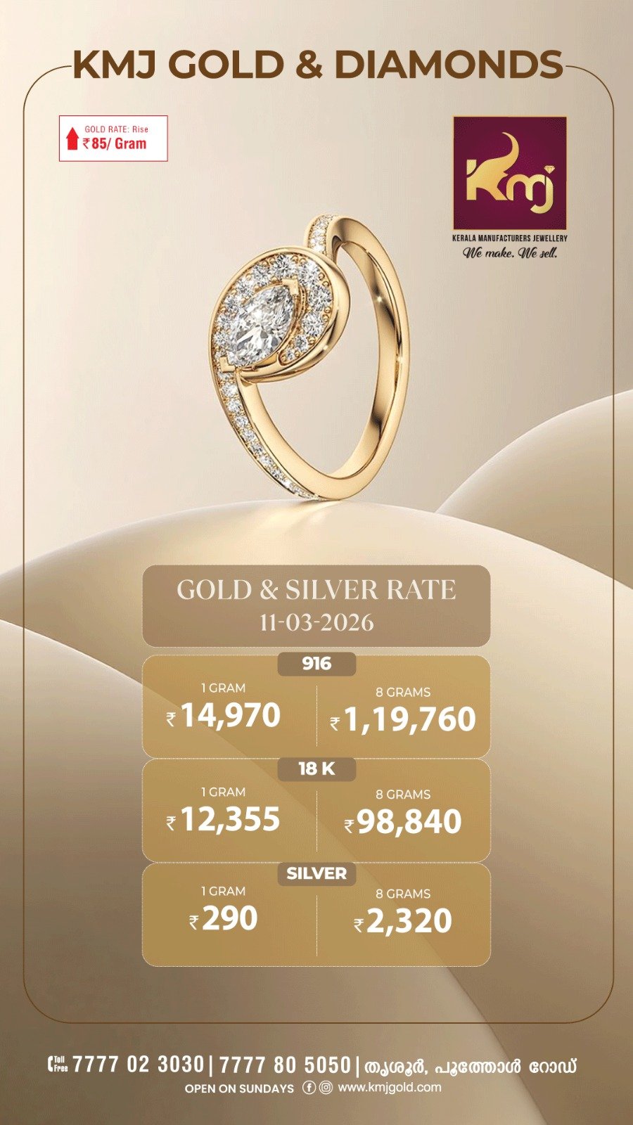 Meanwhile, the Kerala Gold and Silver Merchants Association (KGSMA) has increased the price of 18-carat gold by ₹70 per gram, taking it to ₹12,300.