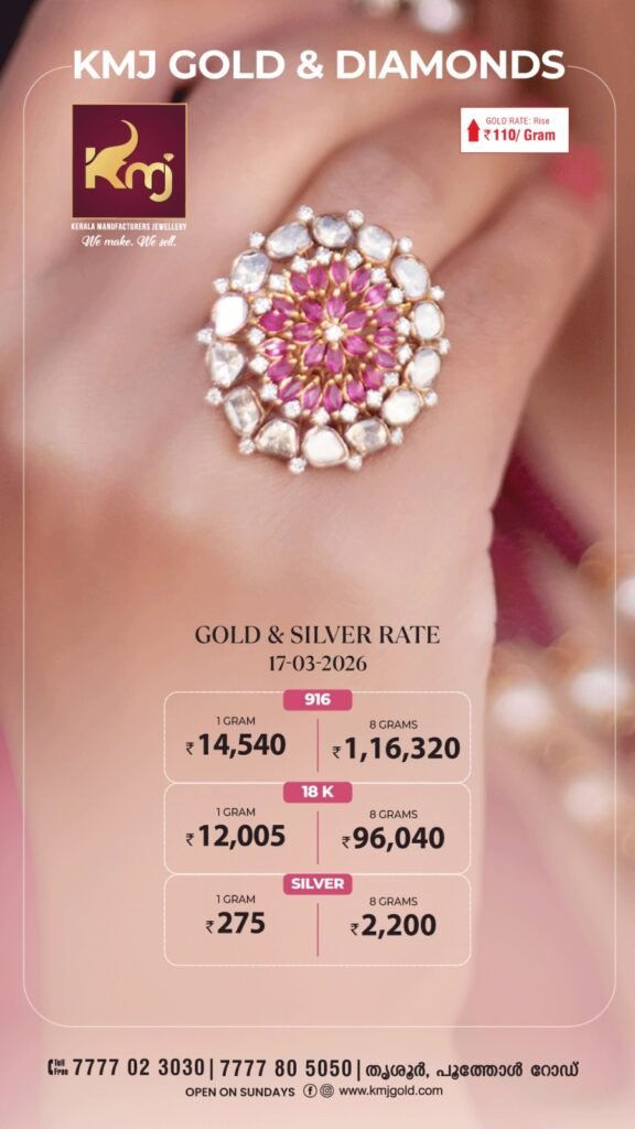 Thiruvananthapuram: Gold prices in Kerala fell today, bringing slight relief to buyers in the jewellery market. The price of 916 gold is currently ₹1,16,320 for 8 grams. Meanwhile, the price of 18-carat gold decreased by ₹40 per gram, bringing the rate to around ₹96,040 for 8 grams.