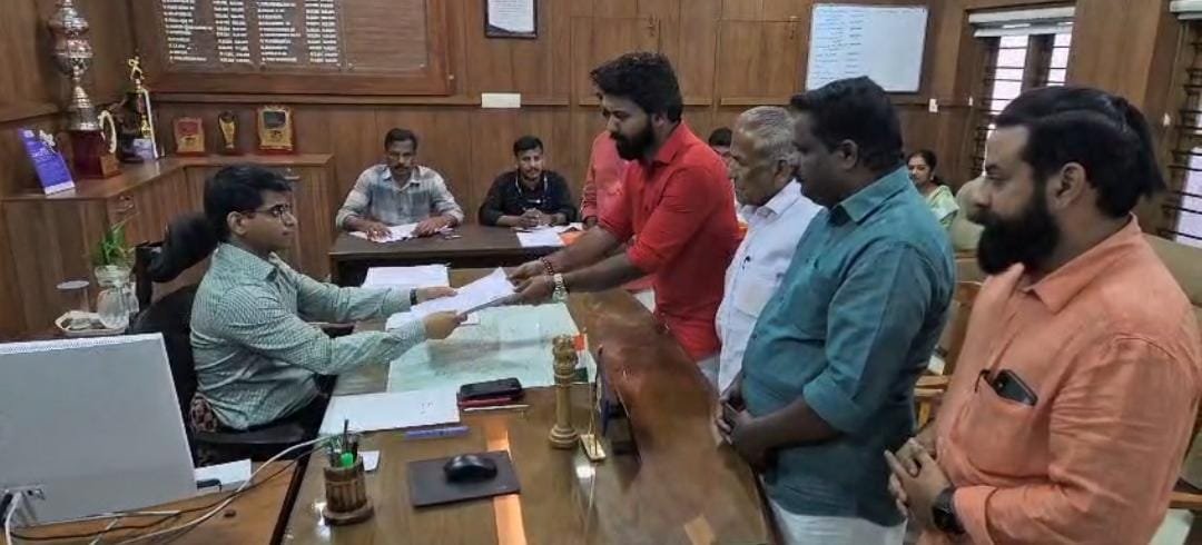 Shyam Raj submitted his nomination following a demonstration held from the Erumatheruvu area, which saw the participation of supporters and local leaders.