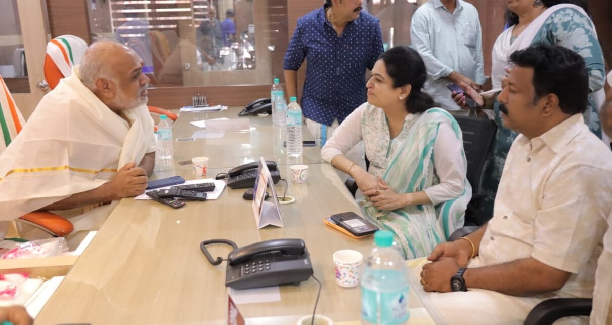 As part of her outreach, Padmaja visited the Ayyanthol Bar Council, where she interacted with members and sought their support. She also visited the Paramekkavu Devaswom office and held discussions with its secretary, Rajesh.