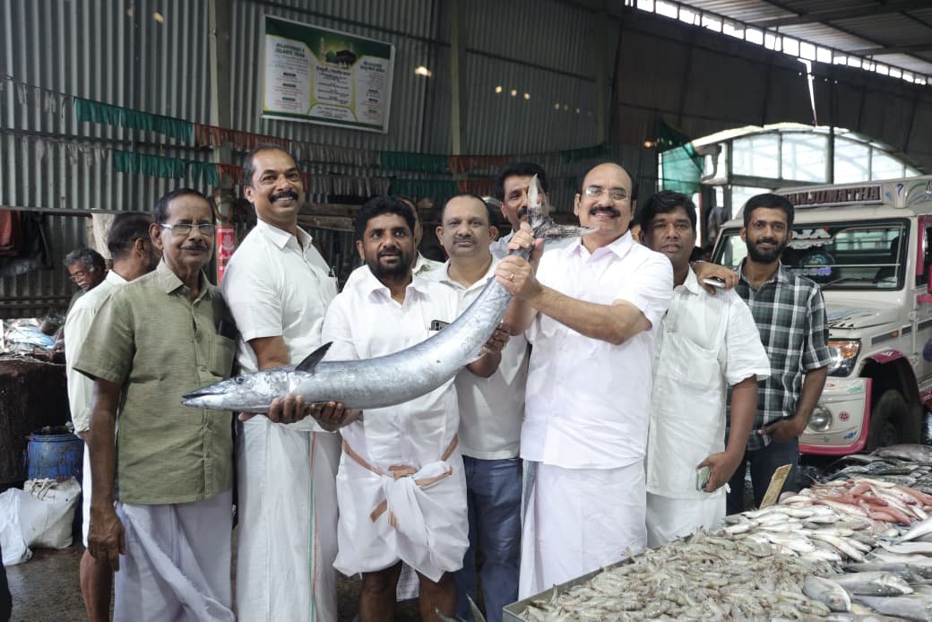 Arriving early in the morning, Rajan J Pallan met shop owners and labourers, highlighting development initiatives carried out during his tenure as Mayor of the Thrissur Corporation. He pointed to the long-standing issue of waterlogging and muddy conditions in the market, which, he said, was resolved during his leadership by raising and concreting the market base.