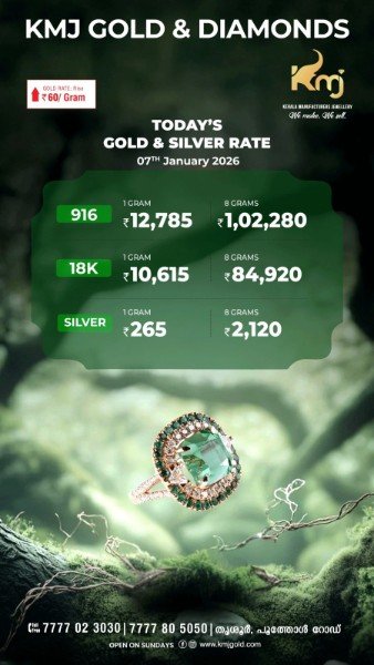 After a record-breaking rally that pushed prices beyond the ₹1 lakh mark, gold prices in the state saw a sharp correction today. The price of gold fell by ₹520 per sovereign, settling at ₹1,03,920, though it continues to remain above the historic ₹1 lakh level. On a per-gram basis, gold dropped by ₹65 to ₹12,990. Read More…